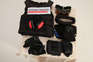 Zum Mietumfang gehören der Alterssimulationsanzug mit allen Modulen, fachliche Betreuung vor Ort, Einweisung, didaktische Begleitung, Reinigung sowie Transport und Schulungsmaterialien.