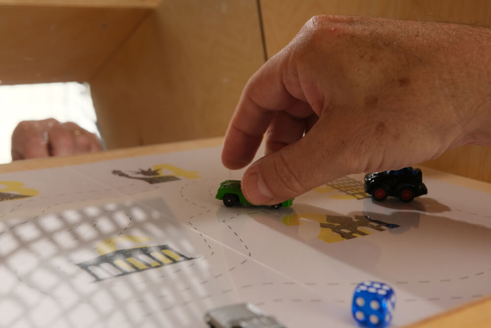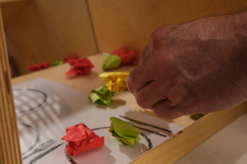 Viele Stationen arbeiten mit Spiegelboxen oder anderen speziellen Hilfsmitteln, um Wahrnehmung, Koordination und Handlungsfähigkeit gezielt einzuschränken. Teilnehmende müssen alltägliche Aufgaben lösen, während die Simulation die typischen Barrieren von Demenz verdeutlicht.
